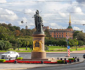 Суворов Александр Васильевич Русский военачальник, генералиссимус. Саект-Петербург. Суворовская площадь. Открытие памятника состоялось 5 (17) мая 1801 года. Скульптор Козловский М.И. Фигура Суворова выполнена из бронзы. Гранитный постамент памятника, выполненный по проекту Воронихина, украшают фигуры двух крылатых гениев — Мира и Славы, которые пальмовой и лавровой ветвью осеняют щит с надписью:«Князь Италійской, графъ Суворовъ-Рымникской. 1801 г.».